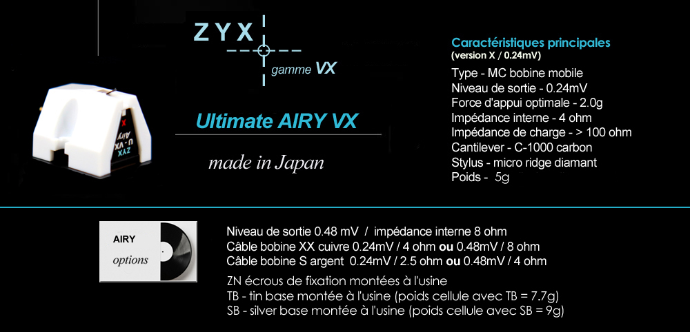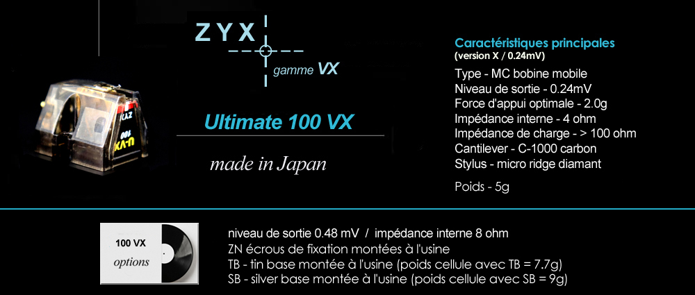 ZYX gamme VX - spécifications détaillées